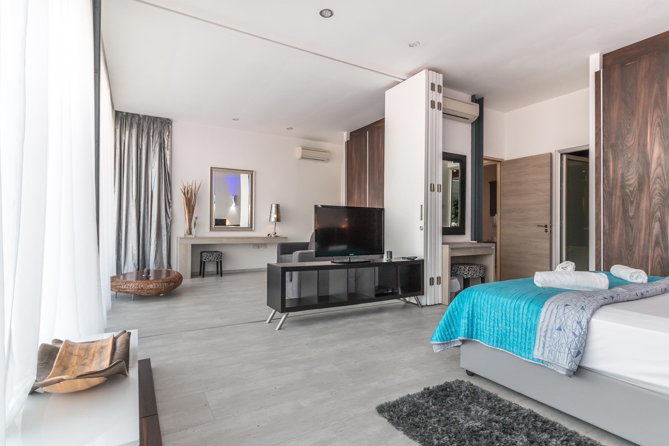 Large triple rooms are located on the first floor and have an awesome Aegean sea view, large windows and a lot of space inside. You are also able to upgrade your room to an upper floor. The rooms on the second floor come with a balcony and 2 comfortable chairs there.